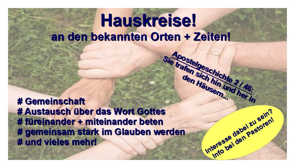 Hauskreise, das heißt u.a.: